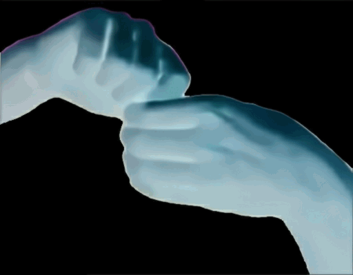 Objeto: A*, objeto forma, contato digital polegar indicador, demais dedos abertos; ação: .Â$, elemento ponta do objeto forma em contato tipo escovar; alvo: /°,,I elemento dedo anelar cor branco; orientação: -, plano chão. Processo consecutivo °-*./°)’=(°\.*- simplificar, cor branca denota o elemento palma com dedo irrelevante, então °-)='(- simplificar, objeto espelho denota objeto composto, então “°-)’=( simplificar, ação contato tipo tocar assimétrico denota objeto composto assimétrico, então _”°-)’= simplificar, um sobre o outro denota o mesmo alvo, então _”°)’ Processo consecutivo ..|.°~# .~)¨$({¢ simplificar, cor preto branco plano parede denota a mesma cor da face do elemento polegar, então |~# ação .~$¨{¢ elemento polegar face perfil interno escovar bochecha repetir, simplificar, escovar bochecha denota o plano de orientação, então #.~$¨{¢